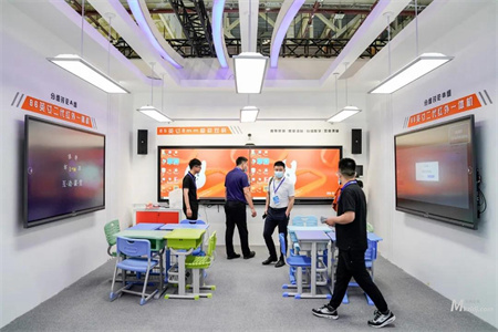 美刻會(huì)展利用歐帝科技的實(shí)力,開始展臺(tái)搭建,精心布局打造了9個(gè)不同的展臺(tái),攜人工智能校園解決方案、智慧教室解決方案、第四代智慧教室互動(dòng)黑板、105英寸紅外一體機(jī)、8mm極窄雙屏等,覆蓋了高教至幼教等幾個(gè)不同的年齡層次,為來(lái)賓提供“一站式”的觀展體驗(yàn)。