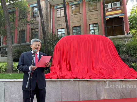 在百年校慶活動當天,廣州執(zhí)信中學校長何勇為“百年執(zhí)信賦”石刻揭幕儀式致辭。他首先代表學校向前來參加活動的各位領導、來賓和各界朋友表示熱烈的歡迎和誠摯感謝。